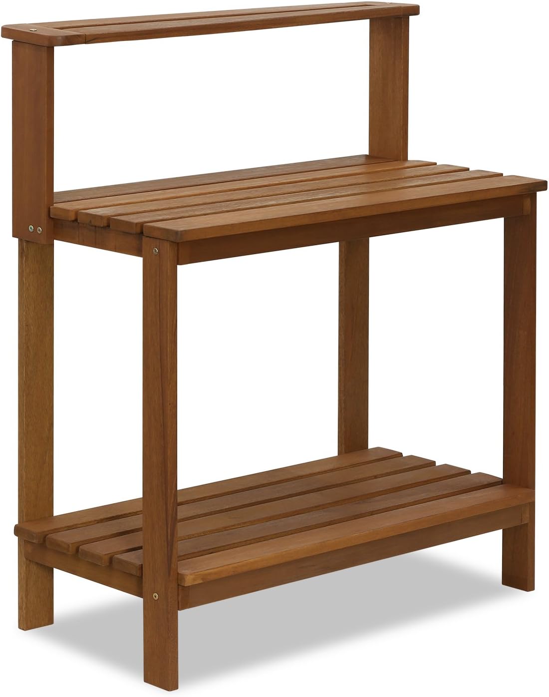 Compared to typical hardwood benches, this model includes thoughtful extras like a tall open frame, a generous work surface, and a long upper rail for both display and functionality. Its straightforward setup makes it an ideal option for quick assembly in any outdoor potting scenario.