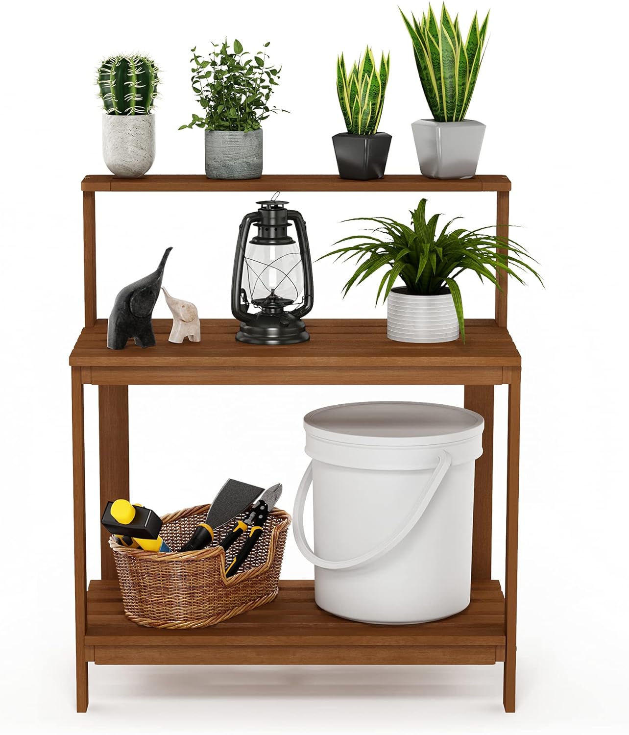 - Spacious Work and Storage Areas: Featuring a plant table surface, a deep upper rail for tools or display, and a lower shelf perfect for storing soil, pots, or watering cans.