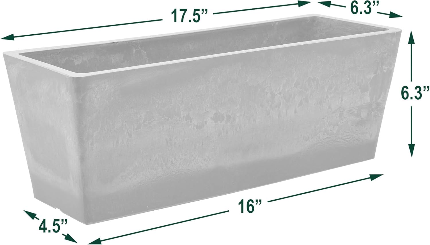 - Lightweight gardening container: At just 17.5″ x 7″ x 6″, this rectangular planter is easy to lift and reposition, even when filled with soil and flowers.