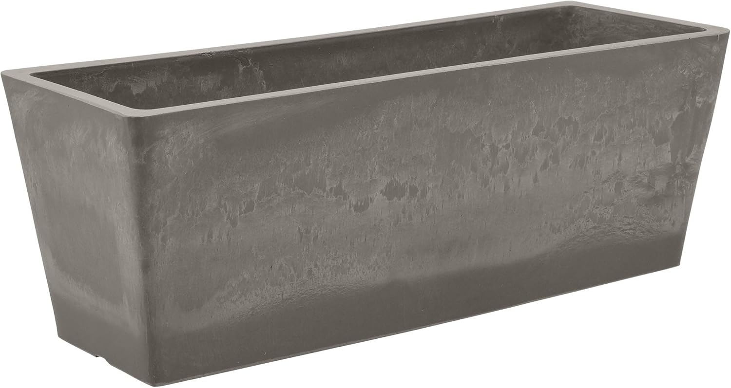 The Arcadia Garden Products PSW U45CT Simplicity Window Box blends style, durability, and eco-friendliness in one planter. Crafted from a unique mix of recycled plastic, stone powder, and wood dust, it offers the attractive look of cement without the heavy weight. This lightweight and sturdy window box is perfect for both indoor and outdoor use, with a leak-proof design and easy-to-drill drainage option. Each piece has its own artisan finish, making it a beautiful choice for environmentally-conscious gardeners.